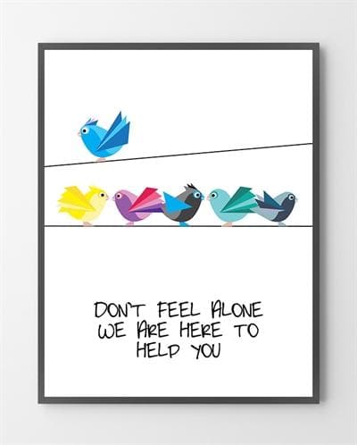 Farverige fugle flyver opad fra teksten "Every Moment Matters" på en hvid baggrund.