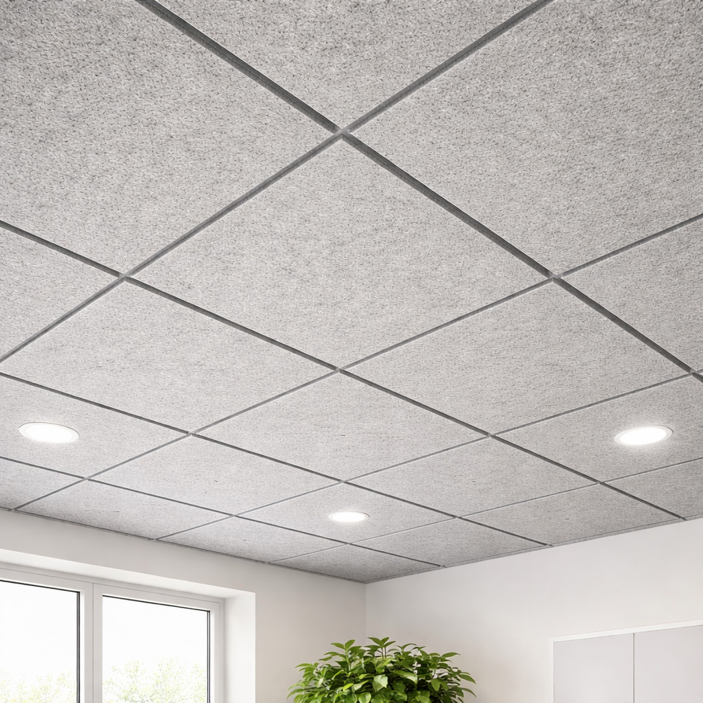 Filt akustikloftspaneler med skrå kanter, 9mm fra Liseborg.dk præsenterer en praktisk løsning til forbedring af rumakustikken. Med en lydabsorptionskoefficient (NRC) på 0,75 bidrager disse plader til en bedre lydkvalitet i dit rum. Fremstillet af 100% genanvendeligt PET-plast, hvoraf 50% er post-consumer indhold, fremmer pladerne en mere bæredygtig fremtid. I produktionsprocessen anvendes blandt andet plastflasker, der er opsamlet fra verdenshavene, hvilket yderligere understreger produktets miljøvenlige profil.