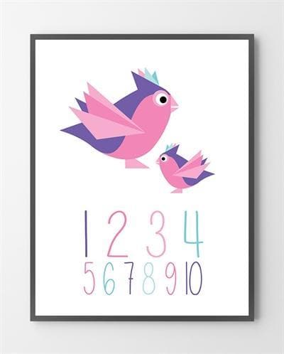 Alfabet plakat til børn med Pink Birdy er lavet i Limited Edition a 100 stk. -  På fotoet er plakaten ikke præget.Alfabet plakat til børn med Pink Birdy er lavet i Limited Edition a 100 stk. -  På fotoet er plakaten ikke præget.