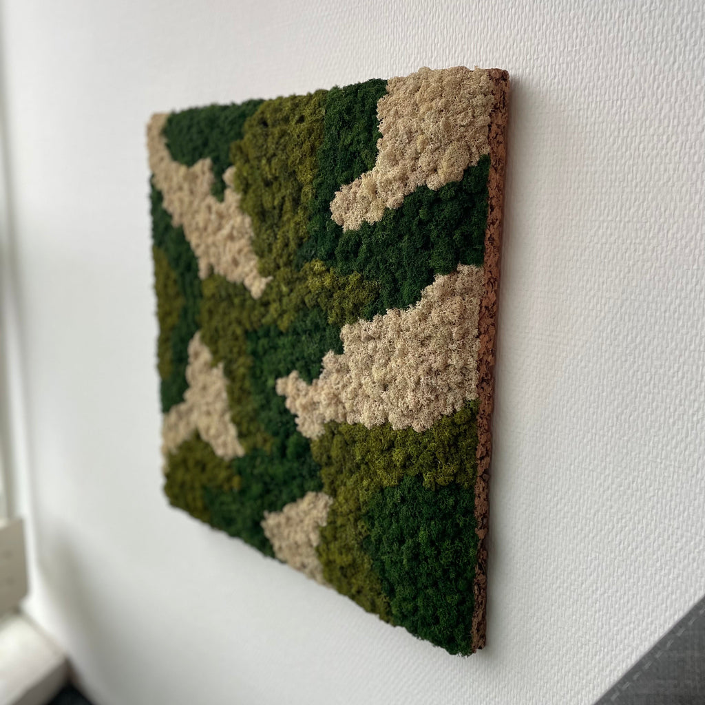 OEKOBOARD Basic - Blandet mos firkant - Mix neutral med 3 reindeer mos farver. Dette produkt tilbyder en naturlig løsning til indretning med en lang holdbarhed på 7-10 år ved korrekt vedligeholdelse.