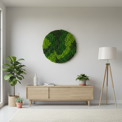 Mospaneler tilfører en beroligende dimension til ethvert rum. Mos cirkel - OEKOBOARD Premium skaber naturlige fokuspunkter på væggen, der både beroliger øjet og forbedrer rummets akustik.