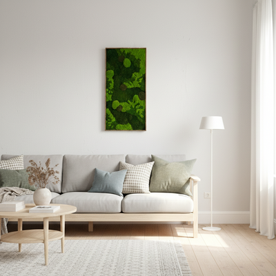 Mosbilleder bringer naturens egen farvepalet ind i dit hjem. Den grønne farve og den organiske tekstur skaber en rolig atmosfære og tilfører dybde til din indretning. Hvert mosbillede har sin egen karakter, hvilket gør det til et personligt stykke kunst på din væg.