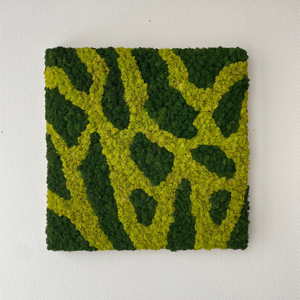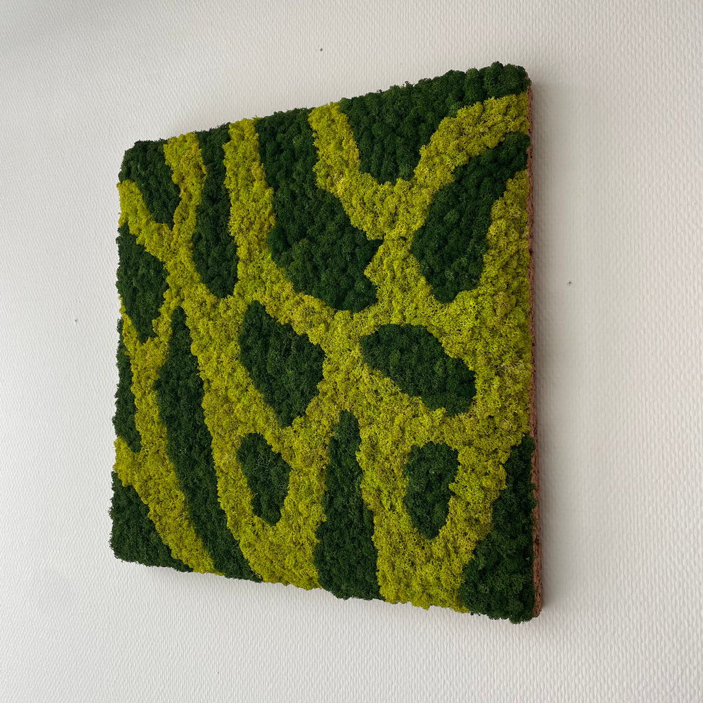 Lime- og mørkegrøn mos firkant i 50x50 cm. med mønster på en 3 cm tyk korkplade - Restsalg.