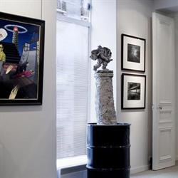 Glas med horisontale hvide striber, der aftager i mønster, skaber delvis privatliv i moderne rum.