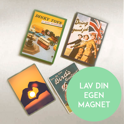Fire rektangulære magneter med forskellige farver. Grøn cirkel: "LAV DIN EGEN MAGNET".